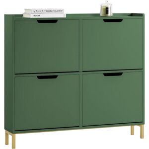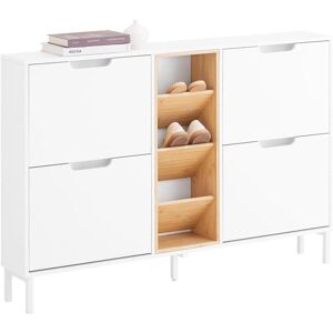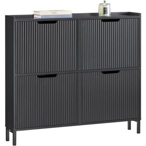 Modern design shoe cabinet in blue color is really eye-catching and impressive anytime and anywhere. Ideally located in hallway or porch, this unit comes with plenty of storage. It provides a shoe storage compartment of 4 flip-drawers. 2 rows of spaces for each drawer. The pull out drawer on the side is ideal for storing shoe polish and brush, keys, and other small items. The hook on the other side is ideal for hanging shoe horns. Please note the hook can bear a maximum load of 2kg. The top of the shoe cabinet is ideal for storing something like keys, wallet you might need in reach, or photo frames and plants you want to display. 24cm in depth, the shoe cabinet is narrow enough to fit even in a small corridor. Coming with anti-tipping device, ensuring great stability and safety. Tidies up your hallway or porch nicely hiding all your shoes and the other items! Product Details Material: MDF. Color: Blue. Dimensions: W104 x D24 x H83cm. Weight: 24.2kg. Load capacity: 100kg. Item comes in