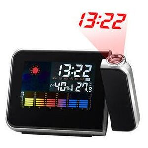 Description Multifunctional digital alarm clock: Alarm clock display time (12/24H), calendar (MM/DD), workday, weather icon, temperature (C/F), humidity and alarm function, snooze function. According to the condition of the room, the alarm clock can predict the humidity and temperature trend in the next 12 hours. Ideal choice: Color LED backlit display with weather trend indicator to show the upcoming weather trends. The color screen of this watch shows the time. It also has an alarm function so you don't miss a beat. Has a repeating pattern. LCD display: The color backlit LCD screen looks great in a home or office and is perfect for checking the time at night without disturbing anyone. Adjustable projection: Project the time and temperature onto the ceiling or wall so you can easily read the time in bed. Adjust the projector back and forth, change the brightness of the projection, and flip the projection 180° for maximum clarity. Powered by USB port and AAA battery: Two power supply