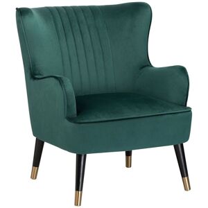 Elegant Armchair. Give your interior a vintage feel with this stylish wingback chair. Upholstered in soft-to-the-touch, easy-care velvet fabric in beige, the armchair features a thickly padded seat for the utmost comfort. The wingback shape and sloped arms add a chic look to the piece, making it a perfect addition to spaces designed in a glamour and traditional style. Details: Product Type: Armchair Style: Retro General Color: Beige, Black, Gold Frame Colour: Black Material Type: Fabric Main Material: Velvet Additional Material: Stainless Steel Filling Material: Foam Legs material: Metal Seat Material: Fabric Material Composition: 100% Polyester Arm Style: Recessed Armrests: Yes Leg Caps/ Pads: Yes Pattern: Solid Reclining: No Seat Construction: Elastic Belt Seat Foam Density: 28 kg/m3 Dimensions: Armrests Height: 60 cm Depth: 77 cm Seat Thickness: 17 cm Seat Height: 42 cm Width: 74 cm Height: 89 cm Seating Surface: 54x51 cm Weight: 13 kg Weight Capacity: 150 kg Offer Includes: 1 x