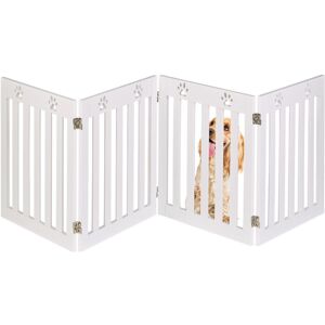 With the freestanding dog guard, you can protect your four-legged friend from stairs and other potential hazards around the house. To keep your dog out of certain rooms, simply adjust the width of the dog guard to suit your needs. When not in use, the stair gate can be folded up and stored to save space. The foam protectors also protect the floor from scratches. The dog paw design blends in perfectly with your home. Dog Barrier in Detail - Overall dimensions H x W x D: approx. 60 x 153 x 2 cm - Width of each section: approx. 50 cm - Depth when folded: approx. 5.5 cm - Bars B: approx. 4 cm - Free space between bars H x W: approx. 47 x 3.5 cm - Weight: approx. 6.7 kg - Material: MDF, EVA foam - Various colours Free-standing Safety Gate for Dogs - Block off certain rooms or stairs for four-legged friends - Protect dogs from dangerous areas in the home - 3-part animal fence can be set up flexibly in the desired width - Floor protector to prevent scratching of the floor - Can be folded up