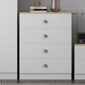 Introducing the stunning Esher 4 Drawer Chest of Drawers in a sleek and modern matt grey finish with a beautiful light oak top sideboard. This elegant and versatile piece is the perfect addition to any bedroom, living room, or dining area. Crafted from high-quality materials, the Esher 4 Drawer Chest of Drawers is built to last. The four spacious drawers provide ample storage space for clothes, linens, or other household items, while the light oak top sideboard adds a touch of warmth and character. Featuring clean lines and a contemporary design, this chest of drawers is sure to complement any decor. The smooth matt grey finish gives it a sophisticated and refined look, while the light oak top adds a natural and rustic touch. Measuring 70cm (W) x 41cm (D) x 90cm (H), the Esher 4 Drawer Chest of Drawers is the perfect size for any room. With easy-to-use metal handles and smooth-gliding drawers, this piece is both stylish and functional.