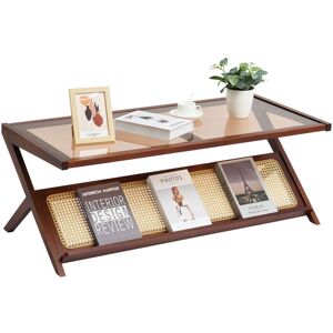 Mophorn 47 in 1-Tier Rattan Coffee Table Elegant Bohemian Style with Modern Functionality Elevate your space with this Z-shaped rattan coffee table, blending boho charm and contemporary design. The tempered glass top provides a sleek surface while supporting up to 110 lbs, offering both style and durability. Easy to assemble and maintain, this table is a perfect fit for living rooms, bedrooms, or any space where function meets aesthetics. Unique Z-Shaped Rattan Style Durable and Sturdy Build Versatile Storage Options Quick Assembly Process Hassle-Free Cleaning Key Features High Quality and Stability: Made from bamboo, tempered glass, and PE rattan, this coffee table supports up to 110 lbs (49.9 kg). Its durable design ensures stability, preventing wobbling even with heavier items. Flexible Storage Space: The spacious glass top displays decor or holds a laptop, while the slanted rattan rack stores magazines and newspapers, blending functionality and style. Z-Shaped Rattan Design: With