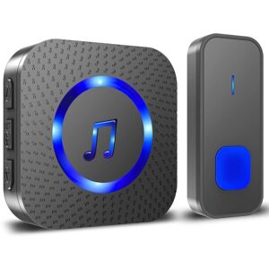 【Easy to install】Just plug the receiver into a power outlet and attach the transmitter to the wall or door frame with the included adhesive tape or screws. 【400m wireless range】The penetrating wireless signal can transmit up to 400m in an open and accessible space. You won't miss a visitor, even if you are several rooms away or on a different floor. The bell will not interfere with other devices in your home or those of your neighbors. 【55 Melodies and 5 Volume Levels】Doorbell receiver with full, clear sound; Press the "Follow" or "Back" button to choose between the melodies. 5 volume settings with a maximum volume of 110dB; Enjoy pleasant and beautiful ringtones every time someone is both. Front doorbell 【Waterproof and LED design】The wireless transmitter made of high-quality material is waterproof to IP55 standard, stable performance is guaranteed for outdoor use. The blue LED on the button and receiver is a visual indicator for hosts and visitors, and is also a fun and careful