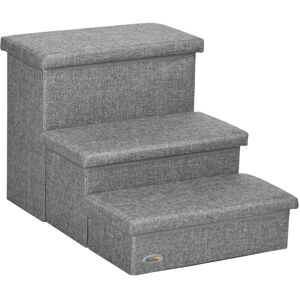 If pets are constantly climbing up and down, they could get joint pain and mobility problems, especially elderly ones. With these PawHut pet stairs, cats can reach their favourite spots without struggling, such as beds, sofas and shelves. Made from durable MDF, the steps are wide to keep pets supported as they walk up and down. Finished with removable tops on each step for extra space, where you can store toys, blankets and more, keeping your space tidy and free of clutter. Specifications: ● Colour: Light grey ● Material: Faux Linen (100% polyester) and MDF ● Dimensions: 40.5H x 63.5L x 42.5Wcm. Each step: 42.5L x 22Wcm. Step height from bottom to top: 13cm, 23cm and 40.5cm. Storage: First and second step: 9/18.5H x 39.5L x 19.5Wcm. Third step: 35.5H x 39.5L x 18Wcm ● Item label: D06-173V70LG Features: ● Allows pets to access higher spots, such as beds and sofas ● Top of the steps can be opened and used for storage needs ● Suitable for pets that are older or have mobility issues ●