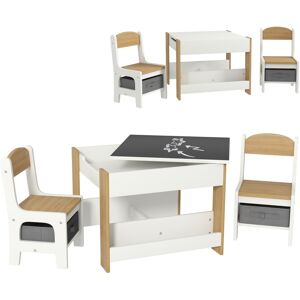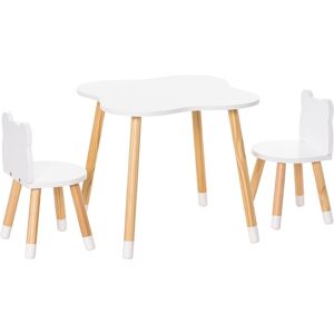 Transform playtime with the HOMCOM table and chairs for toddlers. Providing a comfortable space for fun, creativity, learning and eating, its MDF structure with solid pine wood legs safely supports young ones. The compact and stylish design fits seamlessly in living rooms, bedrooms, playrooms and other spaces. When finished, simply wipe the smooth surfaces clean, so it's tidy and ready for use again. HOMCOM 3-Piece Kids Table & Chair Set with 2 Bear-Shaped Chairs, White