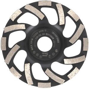 Professional Turbo Alternating Diamond Grinder Hard-bonded segments for abrasive construction materials. Particularly suitable for fresh concrete, high residual moisture, and water damage remediation. Very long service life with high abrasive power 125 mm grinding pad with 22.23 mm bore, 23 mm height, 5 mm segment height for angle grinders, concrete grinders, concrete milling machines, wall grinding systems and floor grinders of all brands with M14 threaded spindle. Application: screed, asphalt, plaster, abrasive building materials, epoxy resin and paint coatings Professional tool with excellent value for money, tested according to EN13236, long service life thanks to high-quality, temperature-resistant diamonds The brand's diamond tools are manufactured with high-quality industrial diamonds that meet high demands in the specified materials. The many years of experience of our employees allows us to offer tools that are perfectly suited to the various areas of application