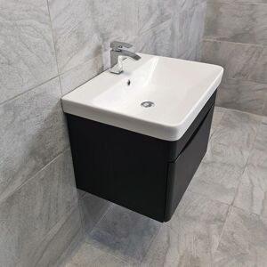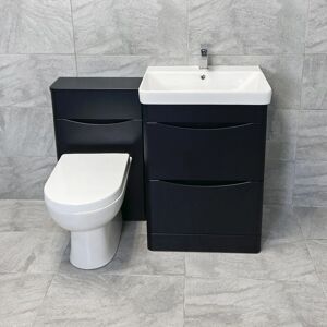 Aegean Satin Black Bathroom Furniture 1100mm Suite Aegean 600mm Vanity Unit: Satin Black colour Unit Made in the UK Two soft close drawers - creating extra storage space for all your bathroom clutter! Internal drawer cut out for waste Contemporary design Ceramic basin not resin 1 tap hole With internal basin overflow Please note: the basin unit & toilet unit are two separate items & can be placed together as per main image, or can be placed apart if preferred Tap & waste not included - can be added at extra cost Basin & unit sizes approx: Width: 600mm Depth: 460mm Height: 855mm With matching WC Unit: Satin Black colour Unit Made in the UK Comes complete with concealed dual flush cistern With D shaped back to wall WC pan Includes concealed cistern With a soft close toilet seat WC unit sizes: Width: 510mm Depth: 200mm Height: 800mm WC pan sizes: Width: 350mm Depth: 530mm Height: 400mm Amy Curved Basin Mixer Tap can be added at extra cost: Contemporary curved spout design Single lever