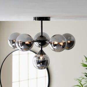 The Oscar from Endon Lighting Collection is an impressive modern semi flush ceiling light which takes inspiration from mid-century design. The fitting is finished in Black Chrome and has got smoked mirror glass shades. This striking light is going to look great in any room. FEATURES: * Semi flush ceiling light * Black Chrome finish * Smoked mirror glass shades * Earthed * Requires 6 lamps * Dimmable with suitable lamp / dimmer switch * Height adjustable prior to installation SIZE: * Height: 37 cm * Diameter: 49.8 cm LAMP: * Requires 6 x 3 watt max LED G9 lamps - NOT INCLUDED