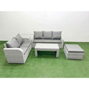 This deluxe Garden furniture set adds decoration to your courtyard, deck, backyard, porch, and even swimming pool, using high quality PE rattan and durable galvanized steel construction, which can withstand the bad weather in the UK and can be easily combined into different configurations according to your needs at any time. Set Dimensions: 1 x Love Sofa Size: 124W x 67D x 79H cm 1 x 3 seater Sofa Size: 177W x 67D x 79H cm 2 x Side table 65L x 65W x 66H cm1 x Big footstool 65L x 65W x 34H cm 1 x Square Coffee Table 65L x 65W x 34H cm Light grey PE rattan with dark grey fabric .Color may some difference due to light or monitor .we are unable to return the item due to color problem . Items Comes Flat Packed And Easy Assemble, Sturdy Galvanized Steel Tube Metal Frames With Powder Coating To Prevent The Rust Flat PE Rattan Completely Made By Hand, 5mm Thickness transparent Tempered Glass With Sucker On Surface To Prevent Sliding Low Maintenance ,Removable Cushion Cover And Easy Move To Different Place. Pls Keep the Cushion Indoor Or put on With Rain Cover When Not In Use . Keep The Furniture With Rain Cover If Not Use For Long Time . 8 CM Thick Seat Cushion With Soft Pillow Back Cushion Gives You More ComfortFactory Direct sale Guarantee The Quality And After Sale Service Important notice: pls check the product carefully before signing it .if it arrive with any obvious ,pls kindly mark on the receipt .we will claim to the courier and send the replacement .thank you This item is for kerbeside delivery , we can't deliver to your room . WARRANTY&SUPPORT:Though we have nearly 100% checking before shipment but as this item is 100% by handmade so If you have any issues of assembly, missing parts, damaged or other problems of product quality of this outdoor rattan furniture set, please feel free to contact us, and our after-sales team will respond within 24 hours and offer you the most perfect and powerful solutions.. Fimous 6 Seater PE Rattan Wicker Garden Furniture Patio Conservatory Sofa Set w/ Square Coffee Table 3 Seater Sofa Love Sofa Big Footstool 2 Side