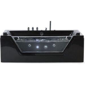 Acrylic Bathtub with Transparent Glass. A rectangular bathtub that combines a classic look with the functionality of the hot tub. The simple design is accentuated by a see-through glass on the front. Featuring elegant chromed fittings and two padded headrests in matching colour. 2 big and 8 small massage jets and LED lightning ensure the most relaxing bath experience. Thanks to its compact size, the tub will work great in small bathrooms. The acrylic non-porous black finish ensures easy cleaning. The whole construction is reinforced with fibreglass for long-lasting durability. Details: Product Type: Indoor Hot Tub Style: Modern General Color: Black Material Type: Acrylic Main Material: Acrylic Additional Material: Steel Shape: Rectangular Digital Control Panel: No Finish: Galvanized Hydro Massage Jets: Yes Jetstreams: 10 Power consumption: 750 W Noise Level: 50-85 Voltage rating: 230 V (50 Hz) Jet pump: 0.75 kW/h Underwater Light: Yes Capacity: 165 Waterfall: No Dimensions: Width: 79
