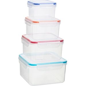 Elevate your kitchen storage game with the Set of 10 Airtight Lid Food Containers from Premier Housewares. Designed to keep your food fresh and organized, this versatile set offers a range of sizes to accommodate various food storage needs. Whether youre storing leftovers, packing a meal for work, or organizing your pantry, these rectangular and square plastic food containers with lids are the perfect solution. Each container in this set features an airtight lid that ensures a secure seal, keeping your food fresh for longer. The lids are designed in four vibrant assorted colors, adding a touch of style to your kitchen. From hearty stews to crisp salads, these containers preserve the taste and quality of your food, whether stored in the fridge, freezer, or pantry. The stackable design of these tupperware sets with lids makes them space-efficient, allowing you to maximize your storage space. No more cluttered cupboardsthese plastic containers can be neatly stacked, helping you maintain a tidy kitchen. The various sizes are perfect for portioning meals, organizing snacks, or storing large batches of food, providing ample space for all your culinary creations.