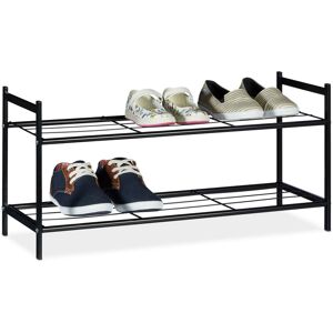 This shoe rack from the SANDRA collection provides the ideal storage space for your hallway or stairwell. The 2 tiers made of powder-coated metal can fit up to 6 pairs of shoes (depending on their size). The top shelf is suitable for boots or high-tops. The metal rod frame makes the shoe rack light and highly stable. The two handles allow the unit to be easily transported. Assembling the rack is very easy for one person to accomplish, thanks to the illustrated instructions and the included assembly materials. Details on the Shoe Rack • Total size: approx 33.5 x 69.5 x 26 cm • Distance between shelves: approx 17.5 cm • Distance between rack and floor: approx 5.5 cm • Distance between individual rods: approx 6 cm • Size of shelf surface: approx 67 x 26 cm Small Shoe Storage Unit for the Hallway • Material: powder-coated steel • Weight: approx 1.2 kg • Available in various colours • 2 large shelves • With handles Ample Space for your Shoes • Minimalistic style • Sturdy stand in the
