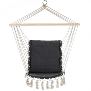 Make yourself comfortable in this lovely hanging chair! This hanging chair withstands a weight of up to 150kg . Easytohang up and down thanks to theclever suspension and so also perfectly suited for on the way. Suitablefor both indoor and outdoor use. Comfortable swing chair for yourgarden or patio. The seat cushion provides a great comfort it´s made from abreathable320 g/m² cotton polyester mix, the cuddly fabric is skin-friendly,weather- and water-resistant. Tear-resistant ropes connect the hangingchair with a strong wooden bar and a robust steel ring. Product Advantages: High load capacity with up to 150kg Seat cushion included Robust steel ring Breathable Water-repellent Weather-resistant Seat cushion adapts to the body shape Easy to transport Easy to mount Technical Data: Size seat: (WxD): 55x100cm Total height: 122cm Length wooden bar: 90cm Material: 70% cotton, 30% polyester Grammage: 320g/m² Load capacity: 150kg Colour choice Scope of Delivery: 1x Hanging chair 1x Steel ring
