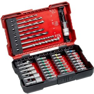 Key Features: 39-piece bit and drill bit set for drill drivers Suitable for all drill drivers with a 1/4" hex socket Supplied in a practical storage box 24x bits (length 25 mm), 3x HSS metal drill bits, 3x wood drill bits and 2x HM stone drill bits Includes 5 x socket wrench inserts, 1 x countersink and 1 x quick-change bit holder Product Description: The 39-piece bit and drill bit set from kwb by Einhell is a practical accessory for all drill drivers with a 1/4" hexagon socket. The set contains 24 bits 25 mm in length in the most common shapes, 3 HSS metal drill bits, 3 wood drill bits, 2 HM stone drill bits, 5 socket wrench inserts, a countersink and a quick-change bit holder. The accessories set is delivered in a practical box. The following bits and drill bits are included in delivery: Bit versions: 5.0 mm, PH 1, PH 2, PZ 1, PZ 2 and PZ 3, hex 4, 5 mm, T 10, 15, 20, 25, 27, 30 and 40, particularly important output forms partly placed several times, bit material CR-V, all bits with
