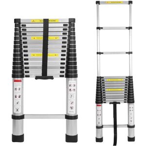 4.4 m telescopic ladder: -Feature: Made of high quality corrosion resistant aluminum alloy makes this ladder much more robust, compact, stronger, thicker and lighter. 15 steps; Each step distance is about 30 cm, fully open up to 4.4 m/14.5 ft. Local stock, fast delivery; -Safety: With removable hook, non-slip bottom cap and slide lock for every step, which make this 14.5-foot telescopic ladder stable and safe during work. The hook can catch the roof, wall edge or tree that fix the ladder. This ladder is approved according to the European safety standard EN131; -Widely used: This ladder can be extended to up to 4.4 m. Suitable for private and commercial use, ideal as attic ladder, attic ladder, stepladder, home ladder, office ladder, telescopic ladder. A great helper for both indoor home use and outdoor activities is a multi-purpose ladder; -Durable: Made of aluminium alloy. This aluminum telescopic ladder is stainless, corrosion resistant, stable and durable. The net weight is only 12