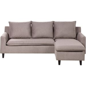 Upholstered Sectional Sofa. This corner sofa combines a classic style with a modern twist. With the reversible design that allows you to place the ottoman on either side, this sofa creates an ideal conversation area in any living room, complementing both traditional and contemporary decor. The piece features durable upholstery in an elegant colour complemented by slender, rubberwood legs that ensure stability. A thickly padded foam seat and loose back made from three large cushions make this sofa perfect for those who appreciate a high level of comfort. Details: Product Type: Corner Sofa Style: Scandinavian General Color: Beige, Black Shade: Light Beige Material Type: Fabric Main Material: Fabric Additional Material: Rubberwood Filling Material: Foam Material Composition: 100% Polyester Shape: L-Shaped Arm Style: Track Orientation: Right Hand Pattern: Solid Seat Construction: Sinuous Springs Seat Foam Density: 24 kg/m3 Seats Up To: 3 People Dimensions: Armrests Height: 54 cm Depth: