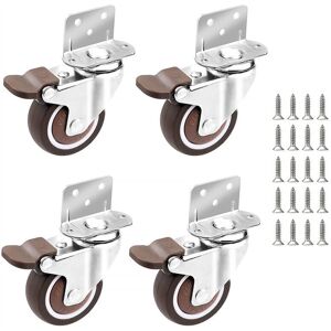 The set contains 4 transport castors with brakes. Each roller is 25mm in diameter with an L-shaped right-angle mounting plate and screws. Our casters are made of high-quality TPE material with good abrasion resistance. The wheel core is made of polypropylene, which is highly thermoplastic and corrosion-resistant. The outer wheel is made of synthetic rubber, which is wear-resistant and has good anti-slip effect. These casters operate quietly and smoothly without scratching the floor. They can support up to 40kg and are suitable for coffee tables, children's beds, cabinets and other furniture.