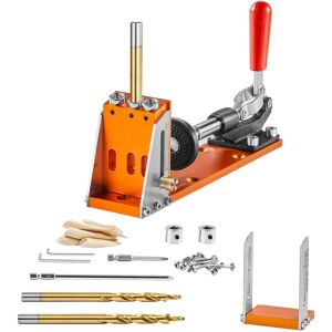 VEVOR Pocket Hole Jig Kit Drilling Like a Pro Ready to get to work? Our pocket hole jig kit features an aluminum alloy body and a stainless steel extension rod, providing stability and preventing shaking during drilling. It is adjustable and portable, taking you further! Begin your carpentry work and unleash your creativity like never before. Stability and Power are Here Adapt to Any Depth Never Miss Your Mark Adaptable and Reliable Features & Details Stability and Power are Here: Are you looking for a durable pocket hole jig kit? Our kit features a CNC precision-machined aluminum alloy body with a smooth surface, ensuring long-lasting use and resistance to wear and corrosion. It allows you to easily clamp long wooden boards firmly and stably. With this kit, you can achieve a no-shake, no-deviation drill every time! Adapt to Any Depth: The pocket hole jig system provides an adjustable depth range of ½-1½" (12.7 mm-38.1 mm). The dual metric marks are visible. You can adjust the