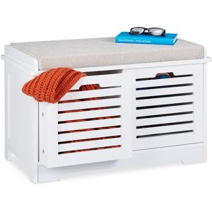 The bench cabinet combines two advantages which makes it a practical piece of furniture in your home. Use the 2 drawers to store hats, scarfs, belts, slippers or gloves to ensure that they are always in one place out of the way. At the same time, the cupboard offers a padded seat for slipping shoes on and off. The storage bench is multi-talented, which can be placed in the entry, dressing room, bedroom as well as the kitchen or bathroom for a modern interior twist. The modern style in subtle white offers a new visual ambience to any room and suits most interior styles. Bench Cabinet Details - Total size H x W x D: app. 48.5 x 87 x 38 cm - Inner drawer size: H x W x D: app. 9 x 79 x 28.5 cm - Capacity: app. 85 kg (seating), 15 kg (per drawer) - Weight: app. 21.2 kg - Material: MDF, fabric - Colour: white Versatile Lofty Storage Bench - Additional storage for kitchen, entry, porch or bedroom - Sitting option on padded bench cushion - Elegant white design for every interior style - With