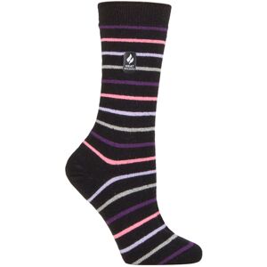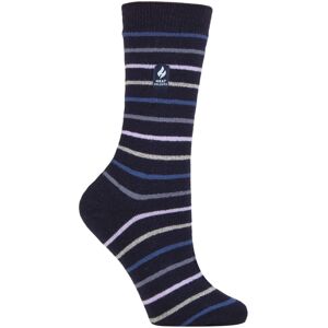 Heat Holders Womens Ladies Ultra Lite Thin Thermal Winter Ski Socks With Stripes - Navy - Size Uk 4-8