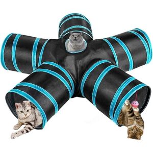 Great Fun for Your Pet: Five interconnected wide tunnels attract cats to hide, hop and move around each other, which promotes healthy activity and brings out your cat's natural hunting instinct. High Quality: Sturdy spring With a steel frame with protective end and then tear-resistant polyester construction, this cat tunnel is durable and comfortable. Don't worry about your pet's safety from scratches and deformation. Funny Paper and Crispy Ball: With peephole and hanging ball toys and bells in the middle, the cat play tunnel will arouse cat's curiosity and keep them entertained for hours. Sports and Training Pets: Due to lack of exercise and torque, most pets have excess fat. Kitten tent with treats, balls or toys for a new level of fun that makes flapping and jumping a great way to burn calories and get some exercise. Foldable and Portable: This cat tunnel opens in seconds and folds easily and secures with the included elastic band for easy storage and transport.