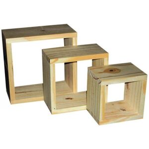 Material: Solid Pine Timber Finish: Pre-Sanded Weight: 6.8KGS Maximum Cube Load: 2kgs Assembled: Supplied Flat Packed ready for Self-Assembly Cube 1 (Large): H 220mm x D 100mm Cube 2 (Medium): H 180mm x D 100mm Cube 3 (Small): H 140mm x D 100mm . P/S set of 3 Wall Cubes- These Wall Cubes are a beautiful collection of three modernistic cubes manufactured from Solid Pine Timber finished in a beautiful Pre-Sanded finish. These Wall Cubes offers a medium storage solution for your home and are manufactured to suit any interior setting whilst combining strength with reliability. The Shelving and Shelf Board Collection from Core Products has popular styling and strong manufacturing techniques and is designed with a Pre-Sanded finish, which will add a rustic quality to your home whilst ensuring a reliable and sturdy storage solution. The shelving range is manufactured from solid cedar timber, for a more authentic feel and it is delivered flat packed, with full instructions, tools & fixings to