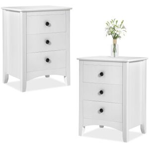Bright and Modern:A clean expression that fits right in, in the bedroom or wherever you place it. Smooth-running drawers and in a choice of finishes – pick your favourite. With a compact frame and classic white appearance, it will sit elegantly next to any bed frame in any home. Exceptional Quality And Construction:You can be confident that the 3 Drawer Bedside Table is here to stay, crafted from a combined poplar wood and MDF material to add resilience and strength to the frame for a long lifespan. The elegant aesthetic is maintained in the 3 Drawer Bedside Table through robust structure and a resilient lacquer finish to protect from signs of damage. Endless Storage:There's no need to worry about where to place your alarm clock or other essential items with the classic wooden 3 Drawer Bedside Table. The 3 Drawer Bedside Table is compact, conserving floor space whilst still offering plenty of storage space with two sturdy drawers designed to host your bedroom essentials and