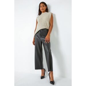 Faux Leather Wide Leg Crop Trousers by Roman UK Feel fabulous in faux leather with our stylish wide leg trousers Designed in a simple silhouette with a cropped finish these faux leather pants are ideal for building effortlessly stylish seasonal fits Detailed with side angled pockets and a zip fly fastening these smart casual trousers can be worn for any occasion Endlessly versatile style yours with a jumper and trainers for casual Autumn days or dress up in the evening with a blouse heels and biker jacket Womens Regular fit True to size 100 Polyurethane Coating 100 Polyester Machine Washable Side Angled Pockets