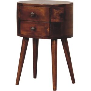 This mini solid wood bedside has been constructed from 100% solid mango wood in a chestnut finish and offers a uniquely shaped design with rounded edges. It features 2 mini drawers which come with a shiny knob and Nordic-style legs. A great, simple addition to the bedroom. Alpen Home