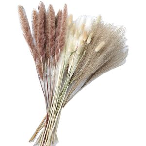 [90 Pieces Dried Pampas Grass] A total of 90 stems of 4 different types of dried pampas grass, including 30 pieces reed grass, 30 pieces fluffy bunny tail pampas grass, 15 pieces white pampas grass, 15 pieces pampas grass. [100% Reed Grass] We have retained the original color of pampas grass with full and even plumes. Naturally dried pampas grass does not require daily maintenance and trimming and is perfect for all seasons. [Perfect Decor for] Naturally dried pampas grass is comfortable to touch, and fluffy, which makes it a perfect choice for flower arrangements. Perfect for indoor and outdoor decorations, you can place them in vases on tables, living rooms or desks, and are also perfect for holiday or store decorations. [Keep It Fluffy] For easy shipping, this pampas grass had to be compressed, please leave it in the warm sun for a few hours, it will become fuller again. Since the pampas grass filling is naturally sun-dried, it is normal for it to shed when shaken. To prevent