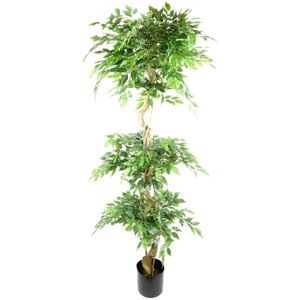 180cm Artificial Ficus Tree Triple Ball Topiary 1984 Leaves. When arranged as shown in our pictures this stands 180cm tall x 70cm x 70cm. The plastic weighted pot measures 18cm (w) x 17cm (h).Highly realistic premium quality artificial plant. Comes potted in a plain black plastic pot and is ready to display but these do look all the more impressive if you stand them inside a larger decorative planter. It comes potted in a plastic weighted pot and whilst it can be left like that you can (if you wish) place it inside a larger planter for a different look. It is very easy to maintain - no watering required! It will benefit from the occasional dusting or can also be hosed off in the garden - these are very robust plants! It is highly realistic with botanically accurate foliage. These come ready to display, just arrange them on delivery and they will look like the real thing. Leaf 180cm Artificial Ficus Tree Triple Ball Topiary 1984 Leaves in Green