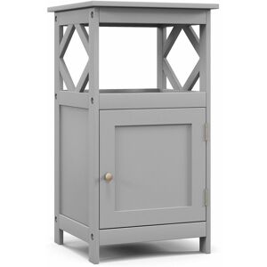 COSTWAY Bathroom Floor Cabinet Single Door Storage Organizer Cabinet W/ Open Compartment Grey One Size