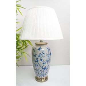 An expertly crafted Chinese ceramic table lamp, featuring a unique and exclusive authentic design. Complete with a pleated faux silk shade. This contemporary design beautifully illustrates the flora and fauna of the Orient. With colourful butterflies and cherry blossom against a dove grey painted background. Butterflies have been a popular symbol for centuries and feature in many Chinese homes. ClassicLiving