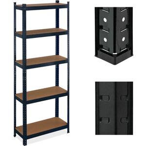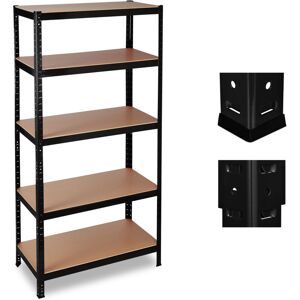 The versatile storage shelf in a set of 2 creates storage space for all kinds of items. As a cellar or workshop shelf, in the utility room or garage, it provides essential storage for heavy items. Whether used as a living room shelf for books and decorations, a kitchen shelf for the microwave and supplies, or an office shelf for printers and files, the matte black storage shelf set looks great anywhere. Assemble the shelving unit according to your preferences – the height of the 5 shelves is adjustable. Tip: You will need a rubber mallet to assemble the connector fittings. For your safety, assemble the shelf while wearing gloves . Heavy-duty shelving unit details, set of 2 - Size H x W x D: approx. 180 x 90 x 40 cm - Total load capacity of the black version: approx. 875 kg (175 kg per level) - Total load capacity of the wood effect version: approx. 500 kg (100 kg per level) - Size per compartment W x D: approx. 89 x 39 cm - Thickness per MDF shelf: approx. 4 mm (black) / 3.3 mm (wood