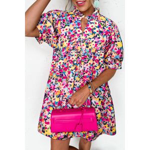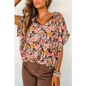 Azura Exchange Womens Pink Floral Print Bubble Hem Split Neck Blouse - Size Medium