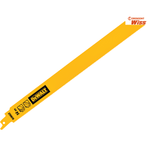 The DEWALT bi-metal construction blades combine HCS and HSS for increased flexibility and durability. These reciprocating blades are ideal for general purpose use in wood, metal, tough plastic and sandwich materials. The Universal shank fits all major brands including DEWALT, Bosch, Hitachi, Flex, Makita, Metabo and Skil. The DEWALT DEWDT2355QZ reciprocating blades are ideal for use in heavy guage metal, rubber, fibreglass and angle iron. DEWDT2355QZ