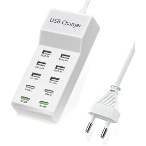 Our USB charger block comes with 6 USB A and 4 USB C ports. The device is capable of charging multiple smartphones, tablets, and other USB- devices simultaneously, providing you with a simplified and organized charging process that caters to your . Please note that this USB C Wall Charger is not suitable for charging laptops. This USB charger station assures safety with features such as overload, over-voltage, over-current, short circuit, overcharge, voltage identification, and temperature protection. It intelligently identifies and supplies the optimal charging current for connected devices, ensuring a speedy and safe charging time. Designed with worldwide compatibility, this charger makes for an perfect travel companion. It has the ability to handle either 110v or 240v, pairing well with iOS, Android, and devices, as well as tablets, speakers, cameras and other 5V USB devices. It streamlines the charging process no matter where you are in the world. Our 100W USB charger station is