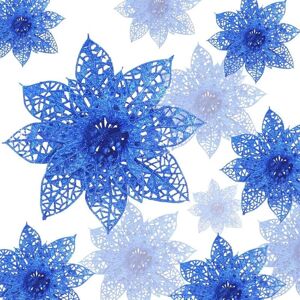 120-Piece Glittering Poinsettia Set: The glittering Christmas flowers set includes 24 poinsettias (15 cm), 12 plastic snowflakes (6 cm), 12 plastic snowflakes (8 cm), 6 plastic snowflakes (15 cm), 6 plastic snowflakes (18 cm), 12 bells (3.5 cm), 12 bow ties, 12 candy canes, and 24 clips. Material: The artificial Christmas flowers are made of high-quality material; the snowflakes, bells, and candy canes are made of plastic, and the bows are made of fabric. All materials are safe, durable, and environmentally friendly. NOTE: Glitter powder may fall out occasionally. This is a normal phenomenon and not a quality problem. Multiple Colors to Choose From: Our glittering Christmas flowers set includes 3 colors: gold, silver, and red. Create a beautiful color theme for your environment. You'll need to use metal wires, strings, or clips (clips included) to hang the decorations in different locations on the Christmas tree. Perfect Gift: This Christmas tree ornament set is the perfect decoration