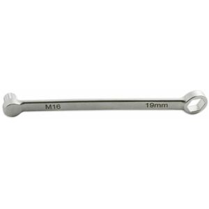 A two in one wrench for oil service on many popular makes including BMW, Porsche and VAG. Applications: Audi A4, A6; BMW, Porsche Boxster; Volkswagen Golf IV, Passat, T4 and T5. Double ended: 19mm Hex x M16 tamperproof Spline. 19mm single Hex and M16 Spline (tamperproof).