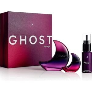 Ghost Deep Night 10ml EDT Mini Gift Set Ghost Deep Night takes its wearer into the world of feelings between day and night. Belle de Nuit - a flower that blooms in the darkness and closes early dawn to draw on its magnetic power. This is blended with Indian rose, heart notes of moon flower, apricot and peach and base notes of wood and vanilla, giving it an embracing warmth and intoxicating aura. Gift set contains: EDT 10ml, Lip Serum. This product is suitable for vegans