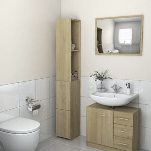 With the simplistic bathroom cabinet, you can store essentials such as towels, toilet paper etc. It is made of engineered wood, which is robust and durable as well as easy to clean. The clean lines and sleek design blend into your bathroom perfectly. There is plenty of storage space, so you can organise different items to make your washroom tidy and clean. 17 Stories Finish: Artisan Oak