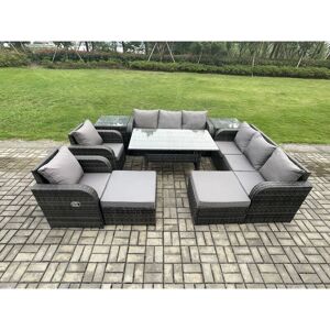 This 10 seater deluxe rattan sofa set is a great addition to patio or garden, made of high quality PE rattan and durable galvanized steel construction for sturdiness and long lasting. Durability ,and can be put outdoor all year round. Perfect set to sit round with your family and friends. Set Dimensions: 2 x Side coffee table 65L x 65W x 66H cm; 1 x Big footstool 65L x 65W x 34H cm; 3 x 3 seater Sofa Size: 177W x 67D x 79H cm; 1 x Oblong Coffee table: 105L x 50W x 48H cm; Dark grey mixed rattan with dark grey fabric .Color may some difference due to light or monitor .we are unable to return the item due to color problem .the product is delivered on pallet, to kerbside only. " Fimous 10 Seater Rattan Garden Furniture Set Indoor Outdoor Patio Sofa Set with Coffee Table 2 Side Tables Big Footstool Dark Grey Mixed