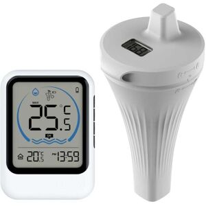 Super Waterproof: With its IP68 waterproof rating, the bath thermometer is perfect for use in swimming pools, hot tubs, pools, bathtubs, ponds, and more. Smart Remote Control: The digital pool thermometer is equipped with a 433 RF radio transmitter that has an effective range of up to 50 meters and in an open environment up to 80-120 meters. Accurate Temperature Measurement: The water thermometer can accurately measure both indoors (0-50°C) and outdoors (-40-70°C). Smart Display: The bathtub thermometer is equipped with an electronic screen that displays the time and temperature in real time and indicates low battery level, making it more convenient for you to use. Easy to use: the sensor requires 2 AA LR6 batteries and the display batteries require 2 AAA LR03 batteries. After inserting the batteries, simply place the sensor where you want to measure the temperature, then you can read the display.
