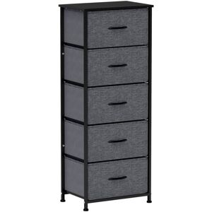 Home storage with this HOMCOM fabric chest of drawers. The five fabric drawers offer room for lots of things - keep t-shirts, tops, bottoms and more organised. The wood-effect top offers more room: a great place to display your favourite photos. The steel frame makes a strong core, with adjustable feet for balance. Comes with anti-tipping straps for safety. Use all over the home and office. HOMCOM 5 Drawer Fabric Chest of Drawers w/ Wooden Top, Dark Grey