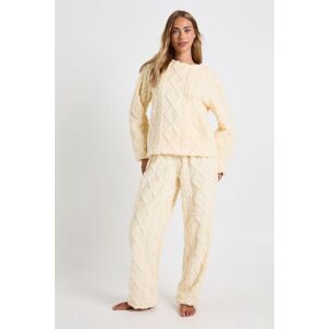 Boohoo Womens Cable Knit Fleece Jumper & Trousers Lounge Set - Grey - Size 8 Uk
