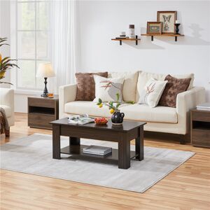 The lift top can be easily adjusted to a suitable and comfortable height for writing or dining while sitting on the couch. Under the tabletop, a large storage compartment and generously-sized open shelf keep your everyday items and living room essentials right at hand and organized. Crafted of E1 MDF with heat- and water-resistant finish, this lift-top coffee table is a piece of worth investing furniture for small apartments, dorms, lofts, dens, and other space-challenged rooms. Simple assembly is required. Yaheetech Colour: Rustic Brown