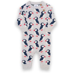 100% organic cotton Proud to be certified to the Global Organic Textile Standard (GOTS) Puffin jacquard knit Grey marl 7-gauge midweight jacquard knit Coconut button raglan sleeve opening Popper crotch opening Long sleeved Ribbed neck, cuffs and hem Made in India Machine washable at 40 degrees, or at 30 degrees to be kinder to the planet