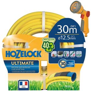 The ULTIMATE Hose includes Ultralite, anti-kink and no twist technology whilst still retaining a hardwearing and robust structure. Includes advanced UV and frost protection.Features:- Includes Super TricoflexTM technology creating an Ultralite, anti-kink and anti-twisting hose without compromising on robustness- The Ultralite technology makes hose 25% lighter than other hoses of the same length and diameter, making it much easier to manoeuvre in the garden- A 30 year guarantee* proves this hose to be long lasting, durable and crush proof, having gone through the most extreme testing in our Hozelock labs- A 5 layer reinforced knitted structure which provides controlled flexibility and resilience- Its silky texture allows it to glide smoothly through the garden, easily manoeuver and effortlessly wind onto a system without any fussSpecifications:Length of Hose: 50 metresDiameter: 12.5mm (1/2")100% Phthalate & Heavy metal free