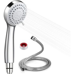 Shower head with 1.5m hose, universal hand shower with 3 functions, ABS chrome, backflow prevention. Three settings: Hand shower with three functions: rain, massage, jet. Premium quality: Made of robust and durable ABS plastic. Easy to clean shower head: quick anti-limescale function - Limescale is easily cleaned thanks to the nubs. No need to call a plumber - Installs in minutes with just three curing joints. Attention The shower head has a massage function, so it will rattle when you shake it. It does not affect the shower function.