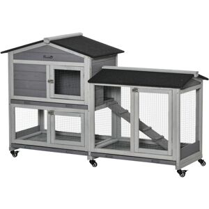 Small pets will thrive in this HOMCOM rabbit hutch. With two tiers, the top is occupied by a house for relaxing and shelter, whilst the bottom is an outdoor run for playing, roaming and fresh air – they'll use the ramp to get around. With multiple lockable doors and a removable tray, it's easy to access and clean, keeping their space tidy. The wooden structure is a reliable home for daily use, whilst the roof keeps them sheltered from hot and wet weather – perfect for outdoors. Specifications: ● Colour: White and grey ● Material: Fir wood, steel wire and sunlight panel ● Dimensions: 100H x 150L x 66Wcm. House: 59.5H x 70L x 58Wcm. Main house door: 32H x 24Lcm. Side run box door: 40.5H x 27.5Lcm. Run box under the main house: 36.5H x 70L x 58Wcm. Side run box: 72.5H x 74L x 58Wcm. Ramp: 15L x 59.7Wcm ● Suitable for 1-3 rabbits ● Item label: D51-294 Features: ● Wooden frame and sunlight panel roof, making it suitable for outdoors ● Steel wire fencing keeps the area well ventilated ● A